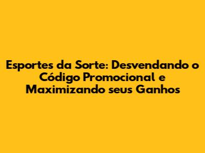 Esportes Da Sorte: Como Usar O Código Promocional E Ganhar