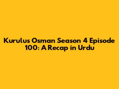 Hey guys! So, we're diving deep into the epic world of Kurulus Osman, specifically Season 4, Episode 100, and giving you the lowdown in Urdu. Buckle up, because this episode is a wild ride filled with drama, action, and everything we love about this incredible series. Get ready for a recap that's gonna break down all the major moments, key characters, and the overall vibe of this unforgettable episode. I will be using strong tags so you can follow me. We will cover everything that you need to know about the episode.